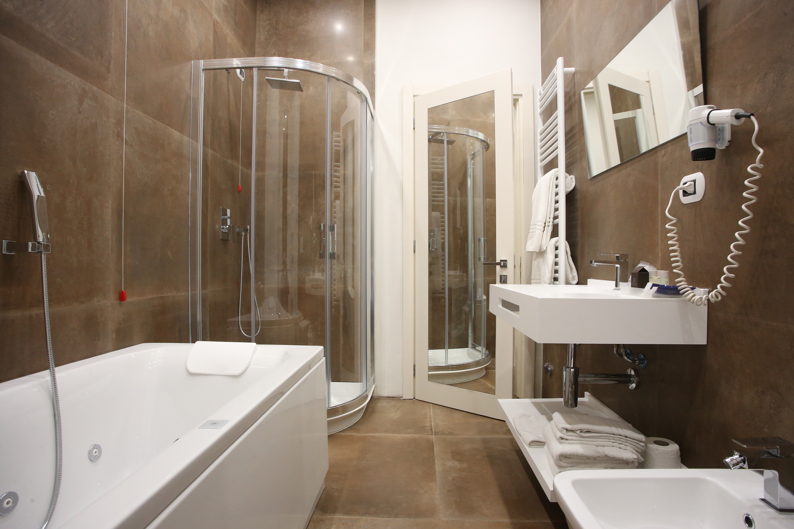 Hotel Columbia Wellness and SPA, completely renovated with 4 floors each different from the other, 4 different styles to choose from, Panoramic Restaurant on the 5th floor unique of its kind in Valdinievole, located in the center a few meters from the Thermal Center, at its inside 2 modern Wellness Centers with aquatic path consisting of two swimming pools, one salt and one fresh with water at 34 °, Salt Grotto and Panoramic Sauna unique in Tuscany.