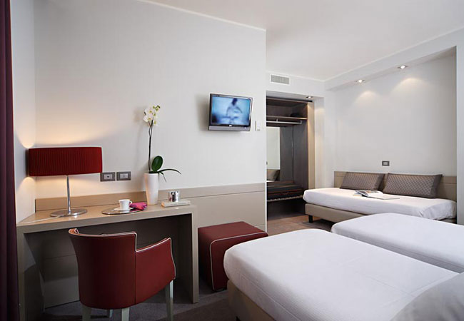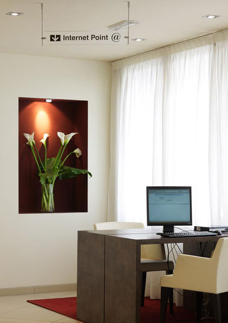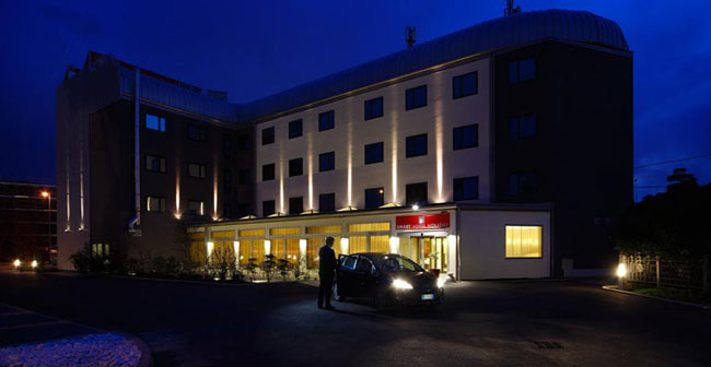 65 rooms, all with individually-controlled air conditioning and heating, remote color TV, telephone. Also provided with large private parking and with a restaurant with terrace. Only 10 minut. from Airport.